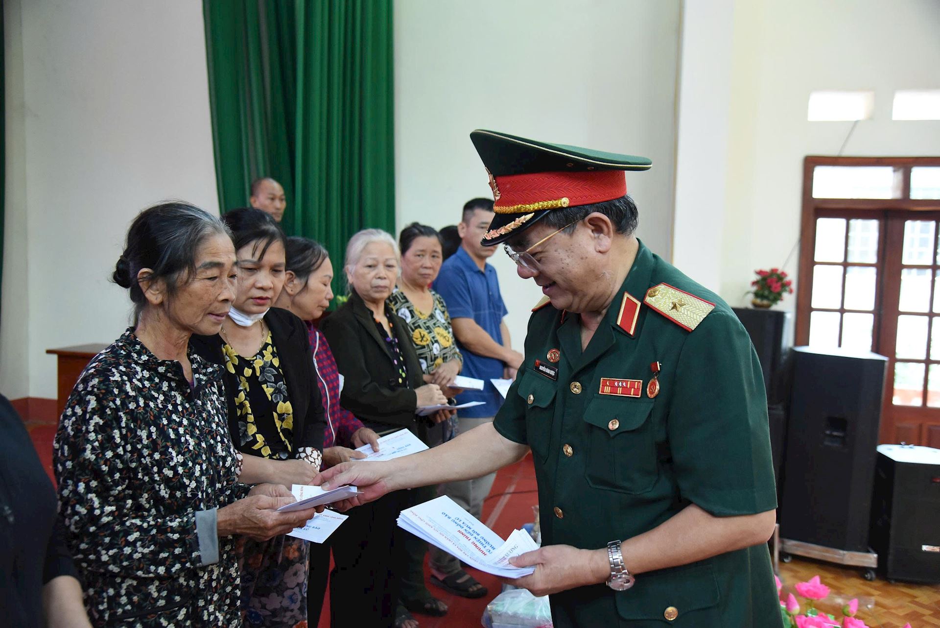 GS.TS Thiếu Tướng Nguyễn Đình Được - Viện trưởng Viện Nghiên Cứu Nhân Tài Nhân Lực Việt Nam trao quà cho bà con cho bà con chịu thiệt hại nặng nề do lũ lụt gây ra tại phường Trung Giã, tỉnh Thái Nguyên