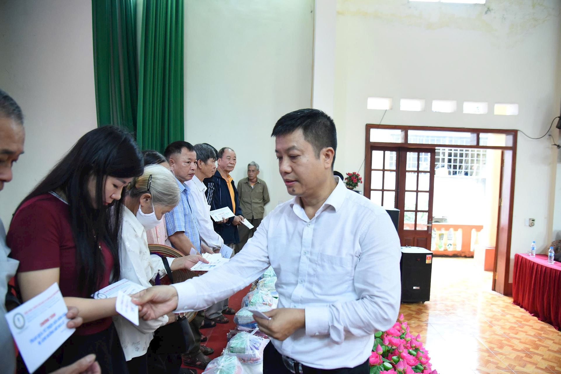 Nhà báo Lại Đức Hồng - Phó Tổng Biên tập Tạp chí Văn hóa và phát triển, Phó Viện trưởng Phụ trách Viện Phát triển Văn hóa và chăm sóc sức khỏe cộng đồng trao quà cho bà con cho bà con chịu thiệt hại nặng nề do lũ lụt gây ra tại phường Linh Sơn, tỉnh Thái Nguyên