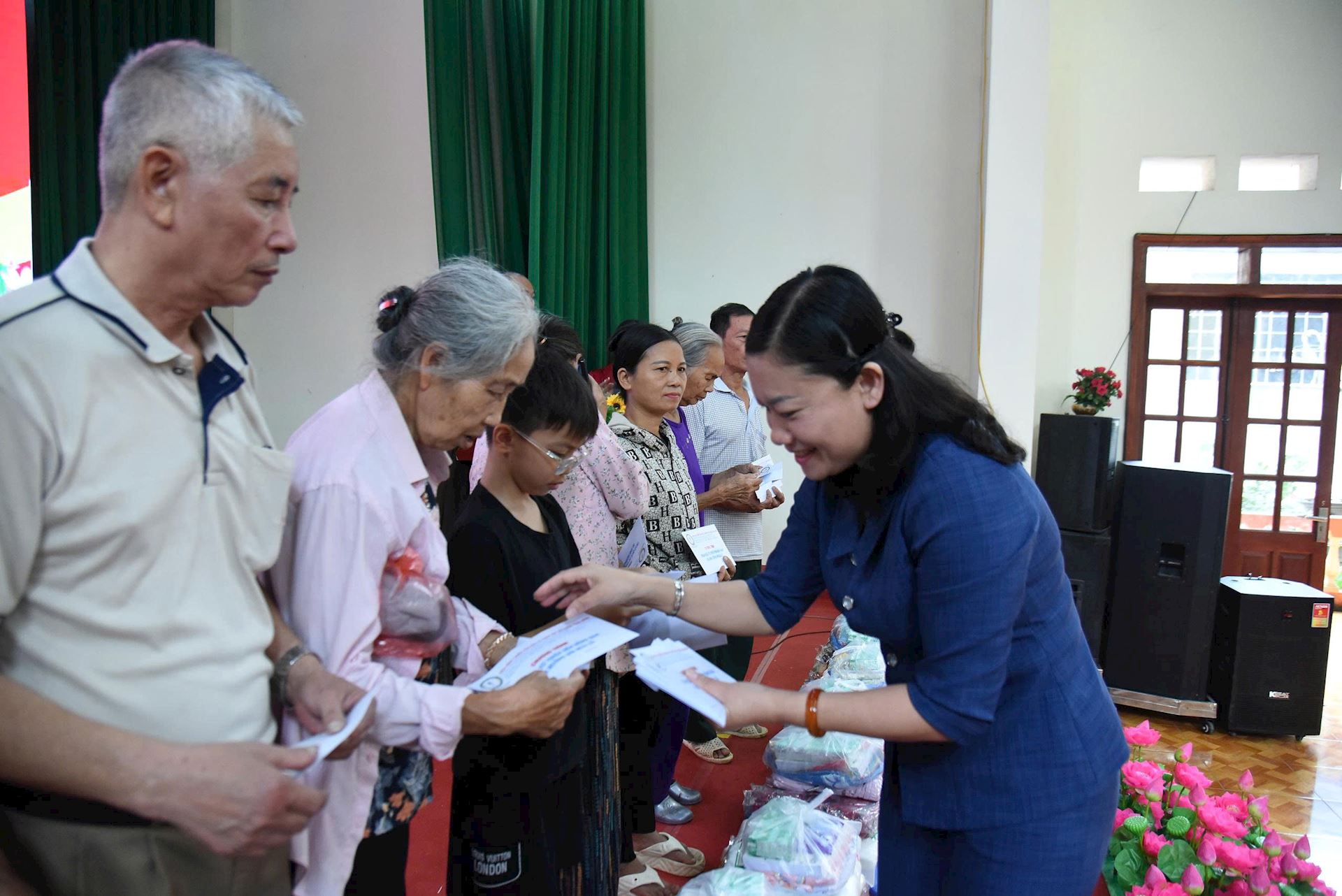 Bà Mai Thị Thúy Nga – UVBCH Đảng bộ Tỉnh, Phó Chủ tịch HĐND tỉnh Thái Nguyên trao quà cho bà con chịu thiệt hại nặng nề do lũ lụt gây ra tại phường Trung Giã, tỉnh Thái Nguyên