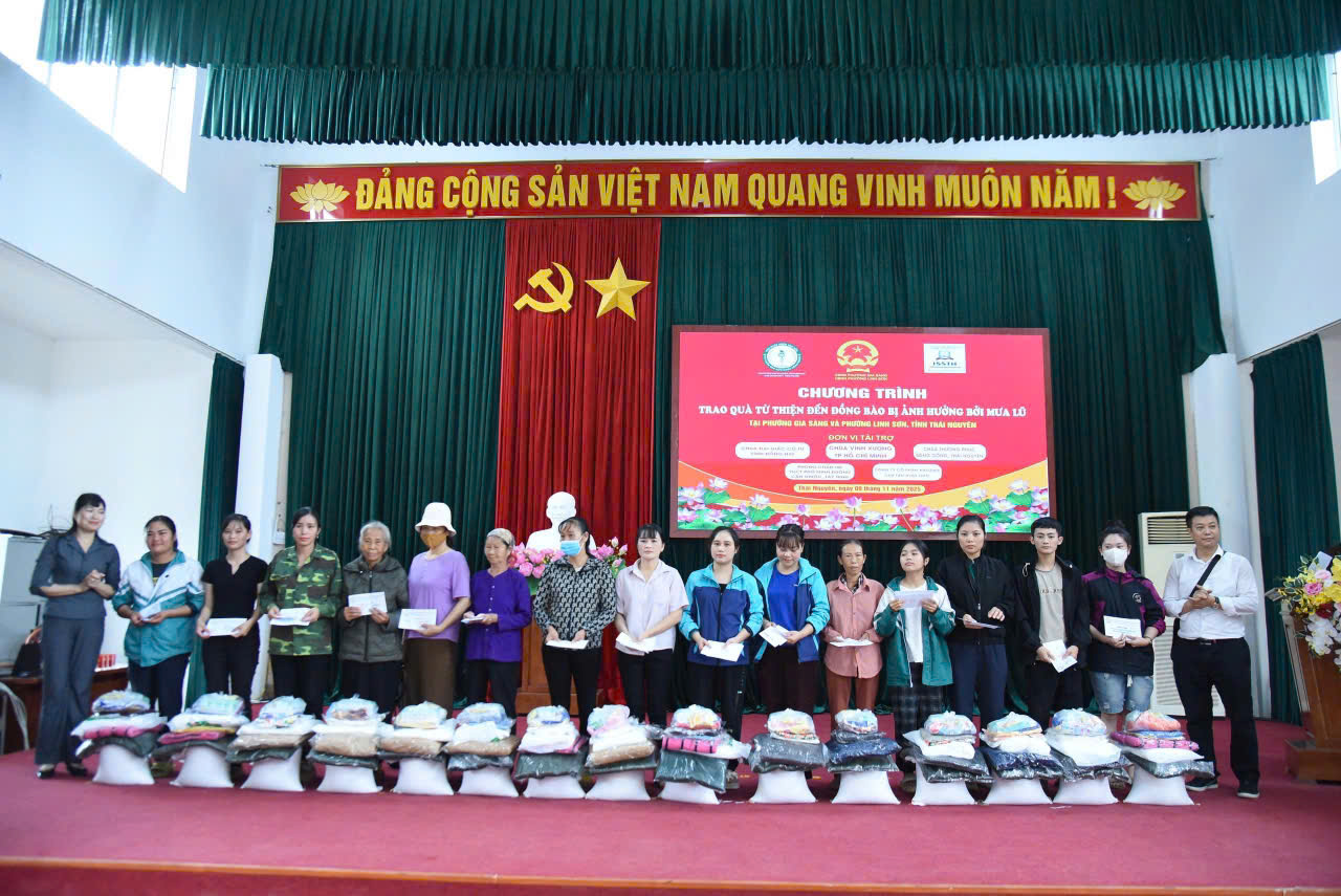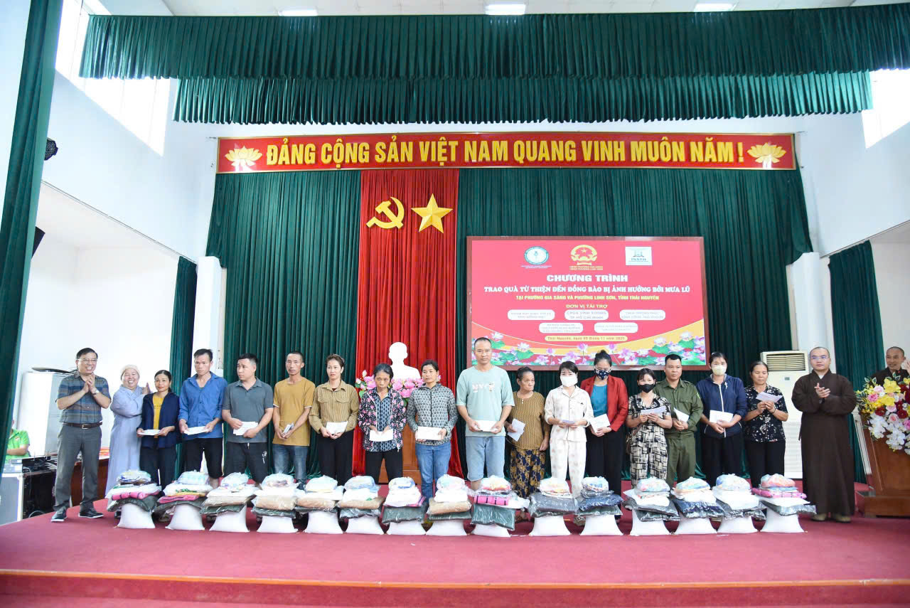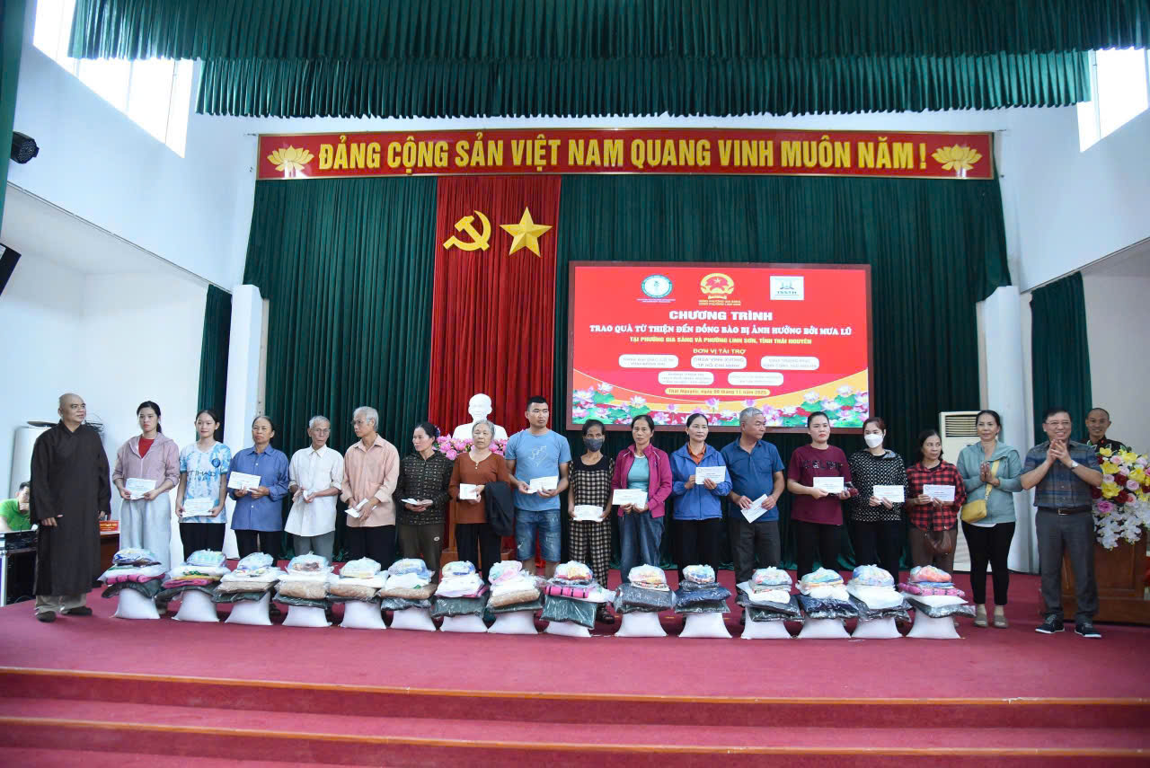 Viện Phát triển văn hóa và chăm sóc sức khỏe cộng đồng phối, Viện Khoa học Nghiên cứu nhân tài nhân lực Việt Nam tri ân các nhà hảo tâm trong chương trình trao quà cho bà con chịu thiệt hại nặng nề do lũ lụt gây ra tại Phường Gia Sàng, Phường Linh Sơn, tỉnh Thái Nguyên