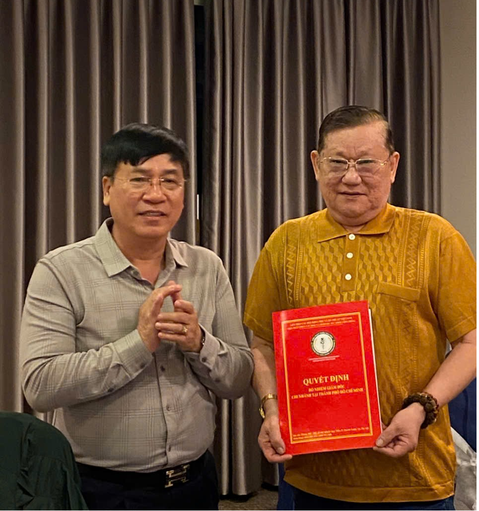 Nhà báo Lại Đức Hồng – Phó Viện trưởng Phụ trách trao quyết định Giám đốc Chi nhánh Viện cho ông Nguyễn Phúc Hưng