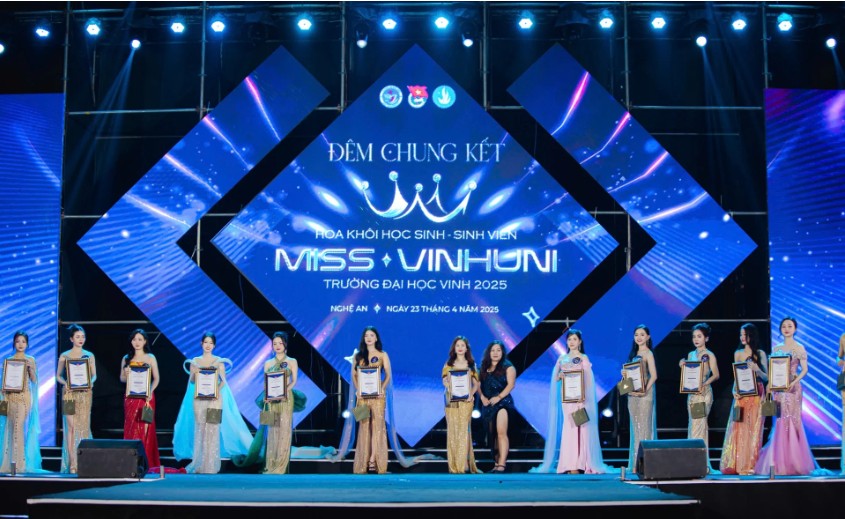 Doanh nhân Hoàng Thị Hằng – Giám đốc Trung tâm Văn hóa Chăm sóc sức khỏe & Sắc đẹp, Chủ tịch Công ty Cổ phần đầu tư Tiến Đức, Giám đốc Công ty CPTM SNK TRUEHEAL GROUP tặng quà các thí sinh Miss VinhUni 2025