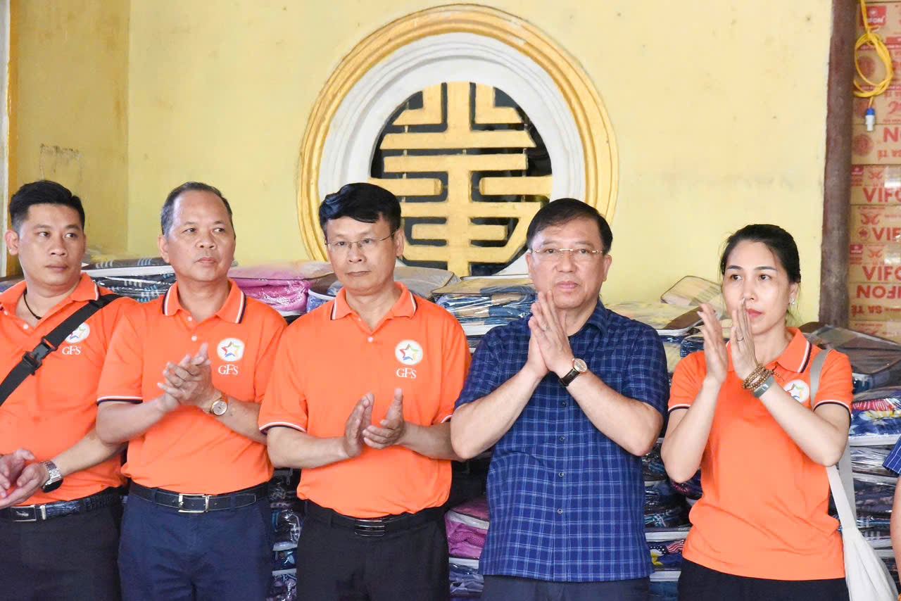 Ông Trần Vũ Minh - Phó Tổng giám đốc tập đoàn GFS trao quà cho bà con chịu thiệt hại nặng nề do lũ lụt gây ra tại chùa Tây Phúc, phường Trung Thành, tỉnh Thái Nguyên