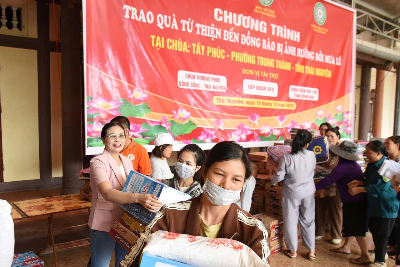 Sáng ngày 19/10/2025, Viện Phát triển văn hóa và chăm sóc sức khỏe cộng đồng phối hợp cùng Chùa Thượng Phúc – Sông Công (Thái Nguyên), Tập đoàn GFS, Thiền Viện Duy Lực (Đồng Nai) tổ chức chương trình trao quà cho bà con chịu thiệt hại nặng nề do lũ lụt gây ra tại chùa Tây Phúc, phường Trung Thành, tỉnh Thái Nguyên.