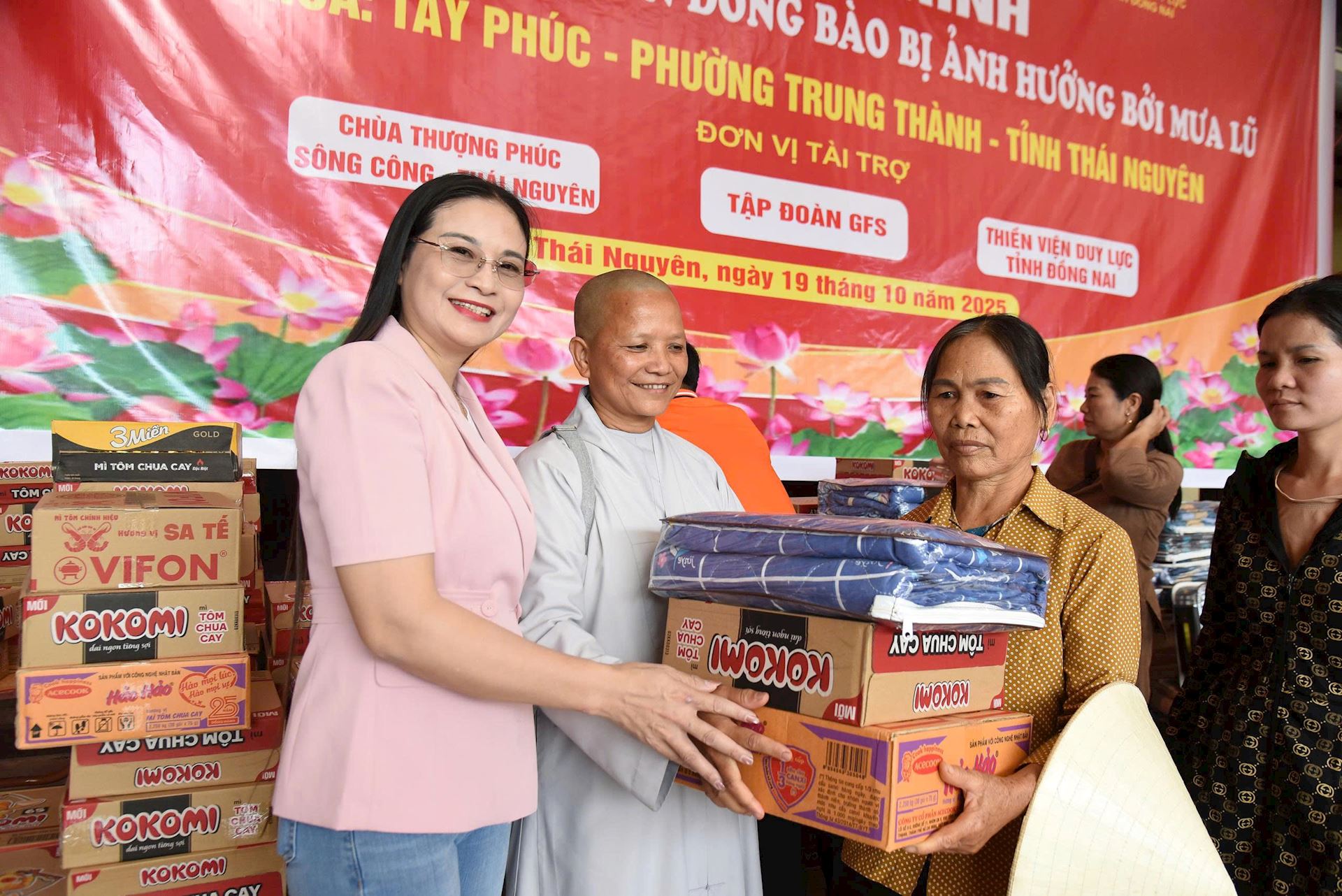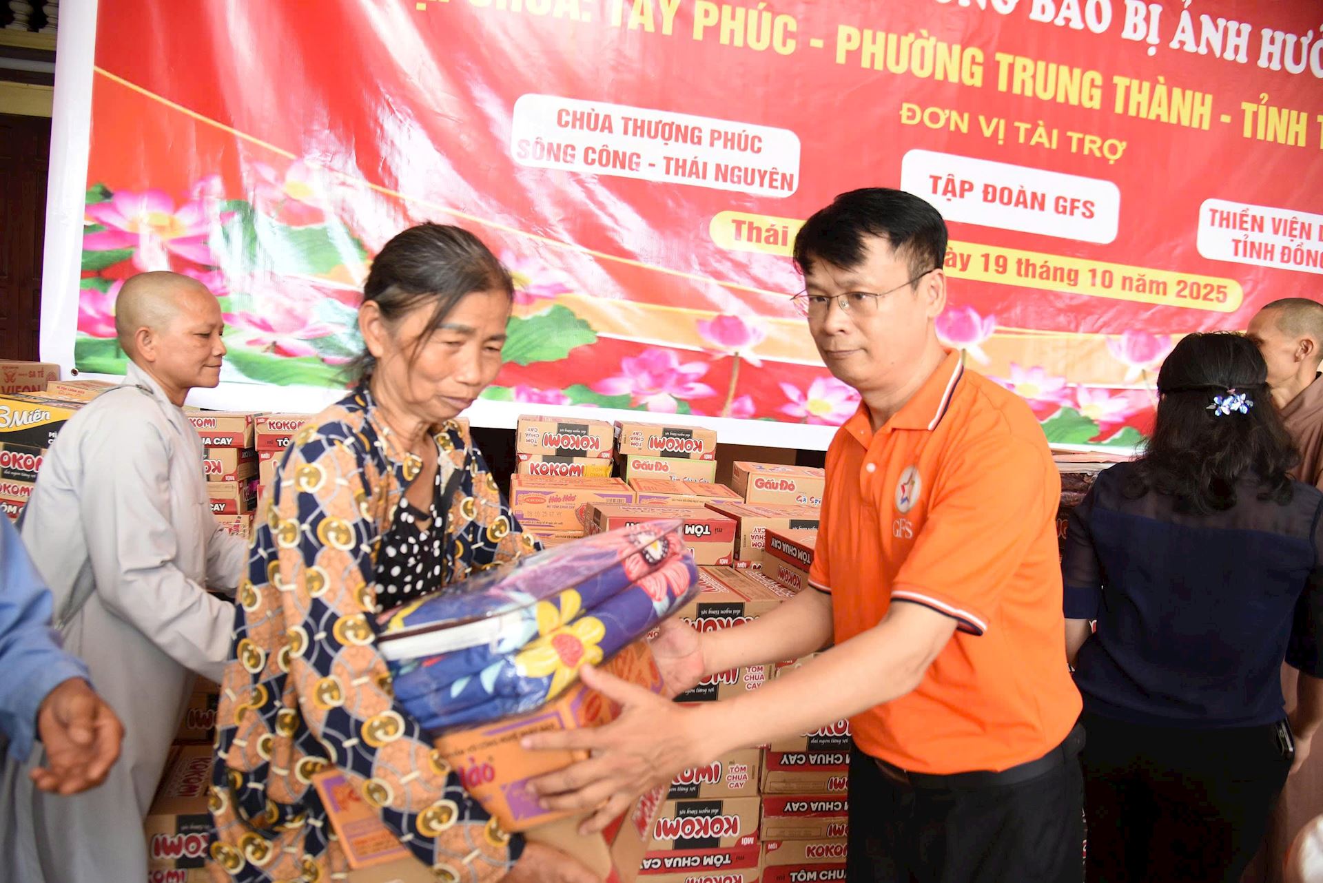 Thay mặt lãnh đạo phường Trung Thành, Bà Nguyễn Thị Thanh Hương - UVBTV Đảng ủy, Chủ tịch MTTQ phường trân trọng cảm ơn tình cảm, tinh thần trách nhiệm và sự sẻ chia của Tập đoàn doanh nghiệp GFS, quý nhà chùa Thượng Phúc – Sông Công, Viện Phát triển văn hóa và chăm sóc sức khỏe cộng đồng. Đồng chí nhấn mạnh, Sự đóng góp của các quý đơn vị không chỉ mang ý nghĩa về giá trị vật chất mà còn thể hiện bản lĩnh, nghĩa tình và tinh thần đồng hành cùng chính quyền, cùng Nhân dân trong hoạn nạn.