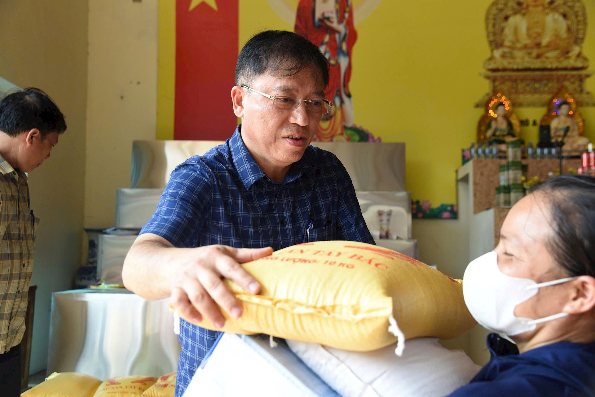 Ông Nguyễn Tuấn Anh - Phó Chủ nhiệm Ủy Ban Công tác Đại biểu Quốc hội, Đại biểu Quốc hội khóa XV trao quà cho bà con chịu thiệt hại nặng nề do lũ lụt gây ra tại chùa Tây Phúc, phường Trung Thành, tỉnh Thái Nguyên