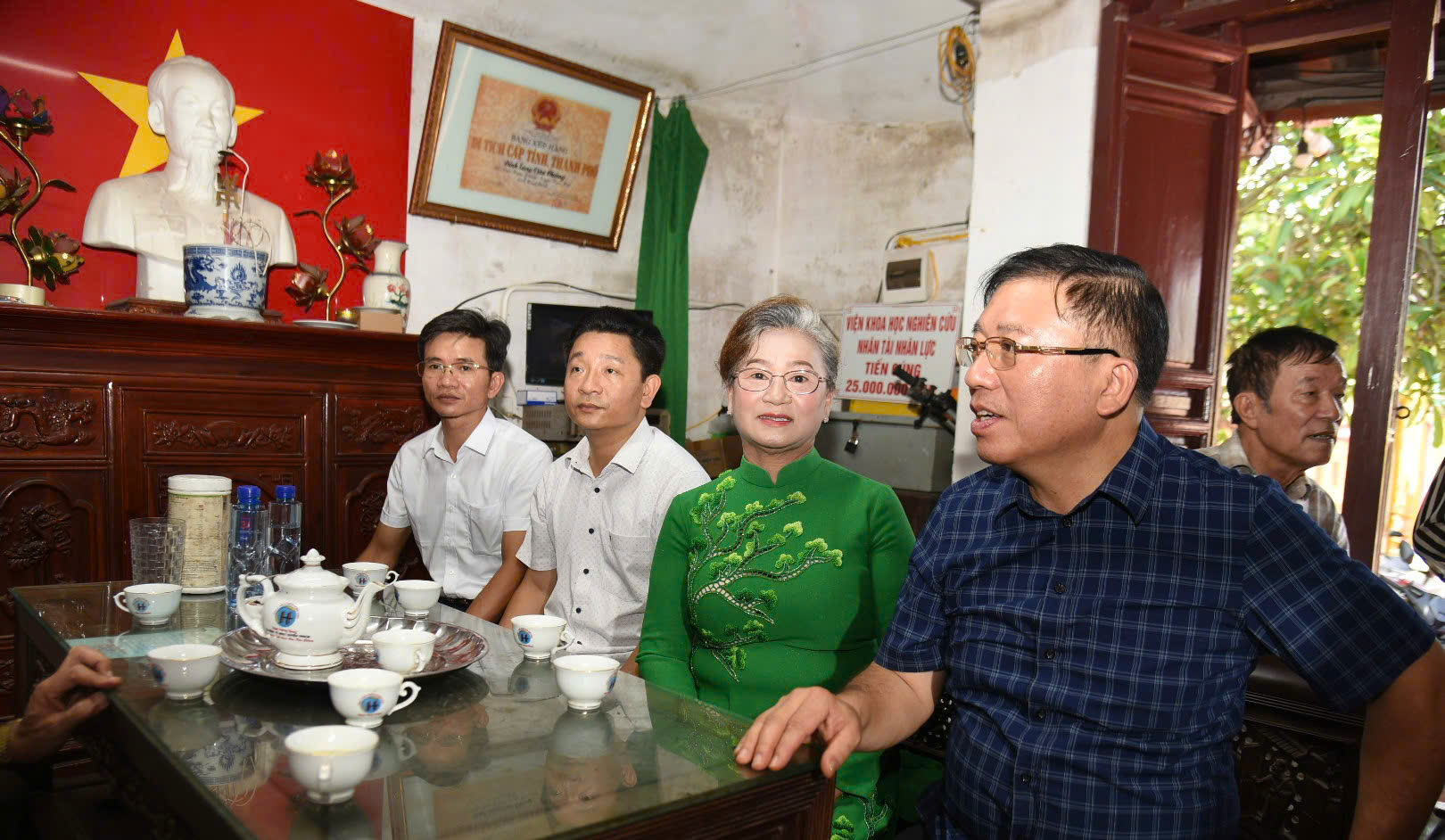 Tiếp đến đoàn công tác thăm quan Di tích đình làng Vân Chàng, nơi lưu giữ những dấu tích của quá trình hình thành và phát triển nghề rèn, nơi kết tụ những giá trị văn hóa của làng quê thông qua tín ngưỡng thờ thành hoàng làng về lễ hội.