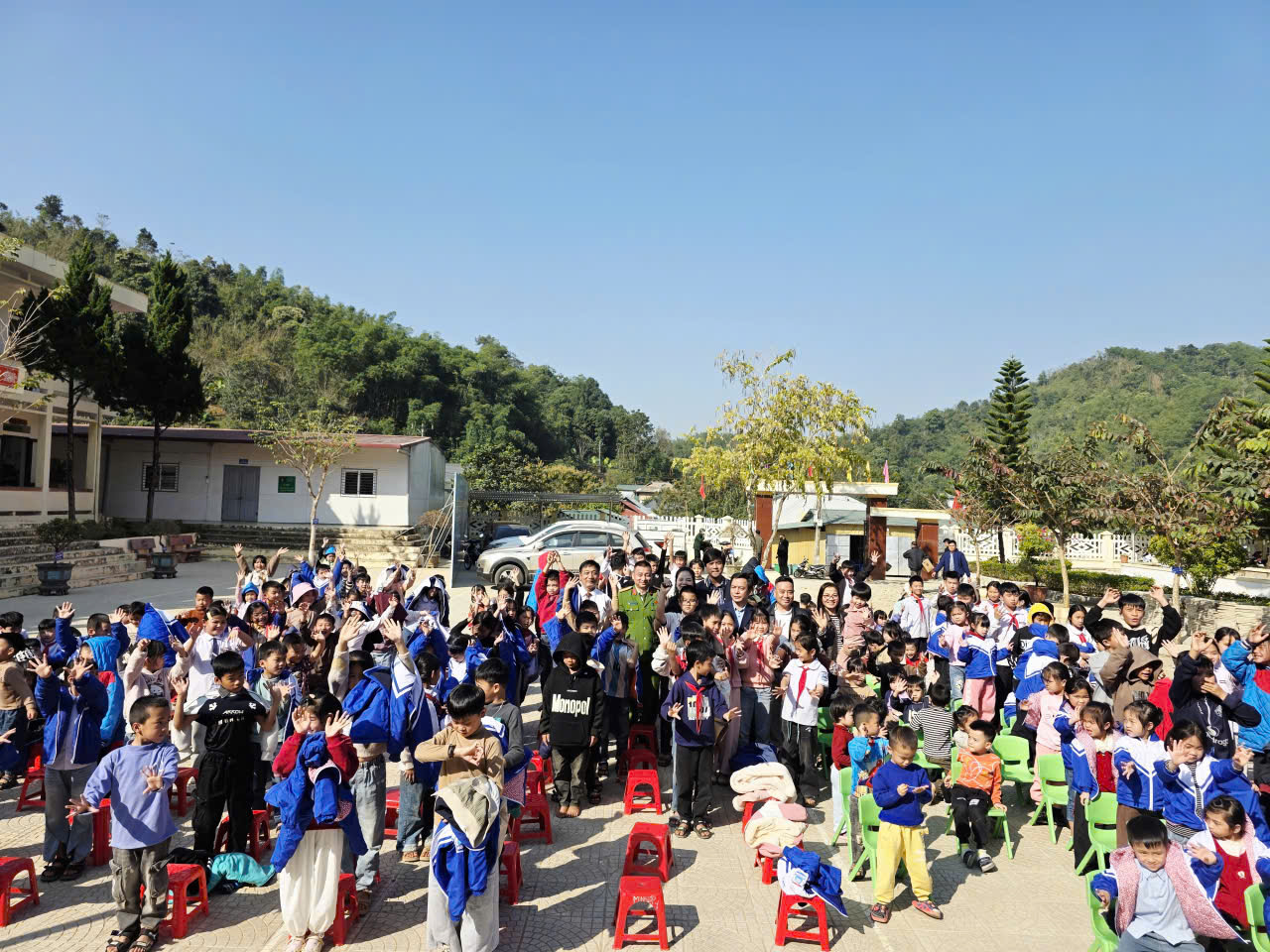 Những phần quà ý nghĩa được Đoàn công tác Viện Phát triển văn hóa và chăm sóc sức khỏe cộng đồng trao tận tay cho các em trường mầm non, tiểu học và trung học cơ sở trên địa bàn xã biên giáo Na Mèo, Thanh Hóa