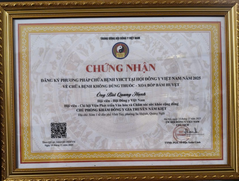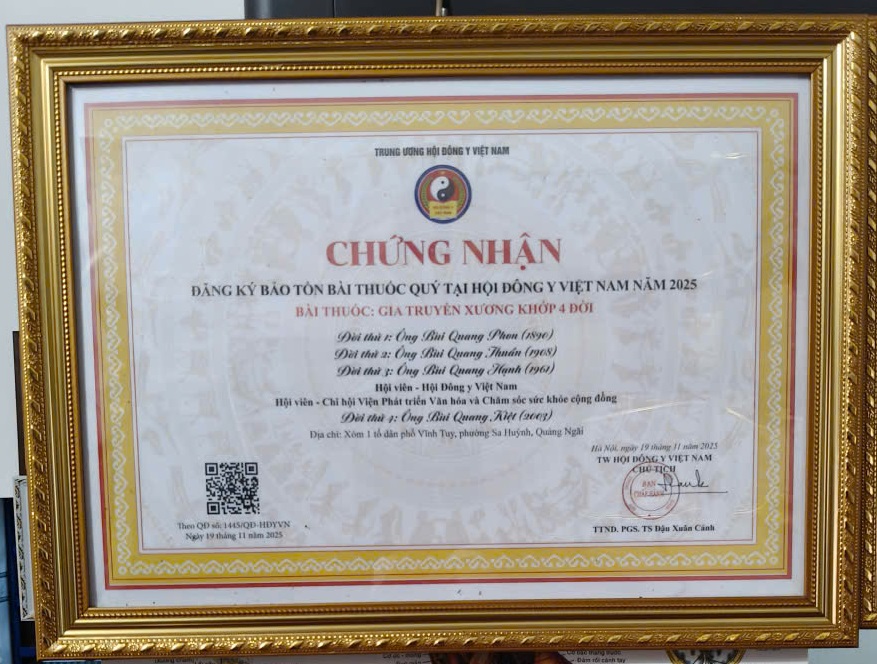 Gần 30 năm lặng thầm cống hiến, Thầy thuốc Đông y tiêu biểu toàn quốc, Lương y Bùi Quang Hạnh ở Quảng Ngãi đã mang lại khả năng vận động và niềm tin sống cho hàng ngàn bệnh nhân xương khớp trên khắp cả nước.